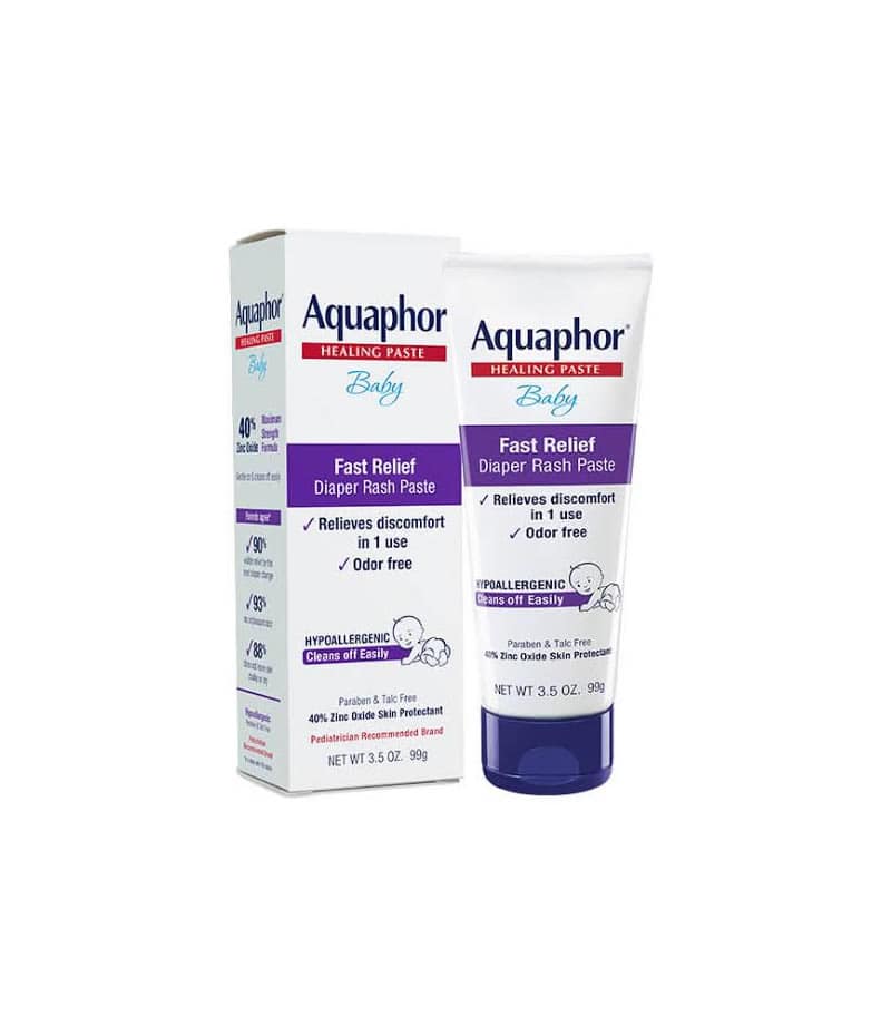Aquaphor Fast Relief Diaper Rash Paste is a diaper rash treatment that provides immediate soothing relief in just one application and protects your baby’s delicate skin from diaper rash. Enriched with natural Shea Butter, the creamy, non-sticky formula is gentle to apply, and easy to clean off. Compared to Aquaphor Baby Rash Cream, the diaper rash paste is formulated with maximum strength 40% Zinc Oxide that intensively treats diaper rash and creates a barrier to protect your baby’s irritated skin with effective baby skin care.